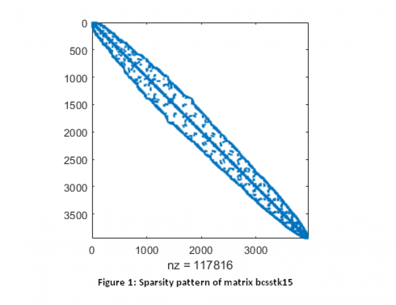 Table 1: Statistics on 9 sparse matrices used to test dense and sparse Cholesky factorization. \(n\) number of variables, \(nnz\) number of nonzeros, density:= \(nnz / n^2)\)
